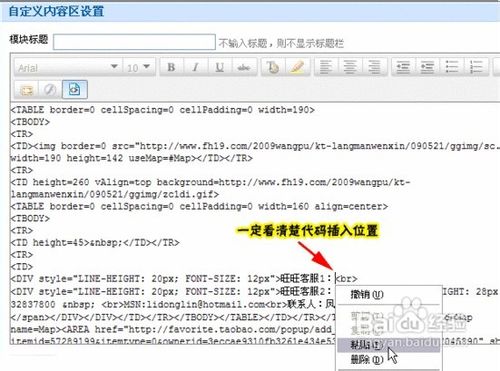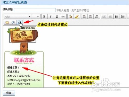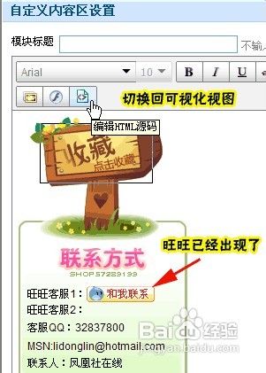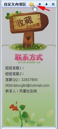 我们就将旺旺插入到了左侧的收藏模板中,找到要添加代码的“自定义内容区”模块,点击编辑按钮