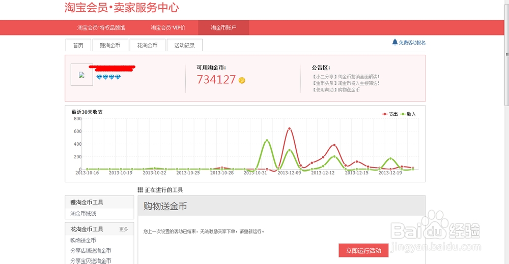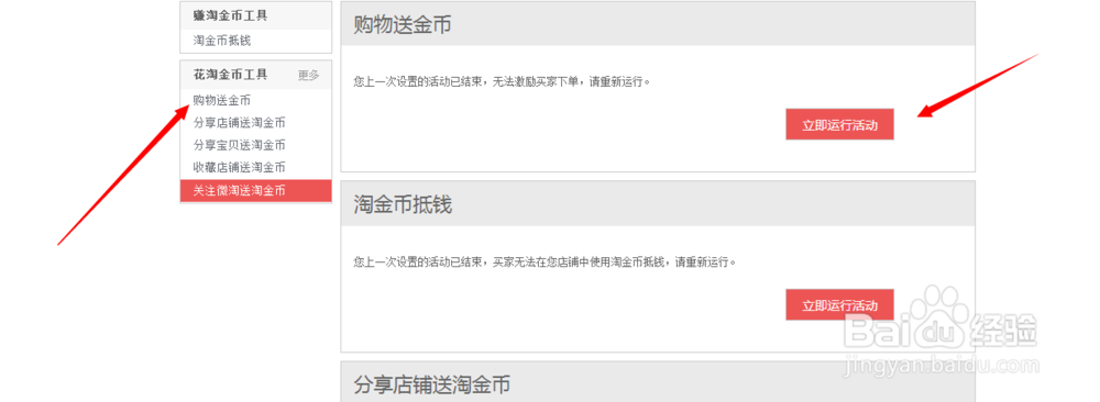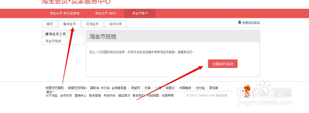 本章介绍的是淘金币抵钱,我们找到在挣金币下面的立即运行活动按钮。