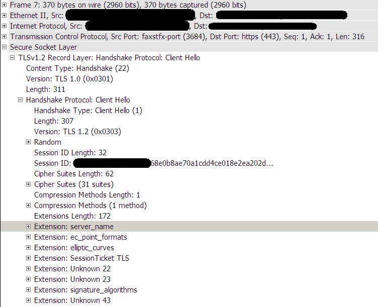 下载失败的那种情况,SSL握手的时候,扩展字段里缺少了server_name.