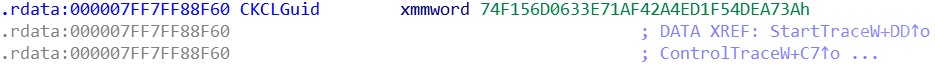 至此,CKCL 已成功启动和更新。下面,我们需要找到一些内核全局地址,来方便我们进行之后的操作。EtwpDebuggerData,是一张存放所有 ETW 信息的表。通过IDA搜索可以发现有这个变量符号,但是查看交叉引用却发现IDA并没有分析出哪里使用了这个变量。所以只能通过暴搜的方法去找到这个变量的地址。通过多个系统版本的内核文件进行 IDA 分析,可以发现两条信息。