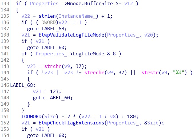 这段话说明我们拷贝到结构体之后的字符串还会在 StartTrace 内部被处理。对在 Ring3 启动跟踪会话的信息了解的差不多了。但是问题来了,如何在 Ring0 层实现这些东西呢?所以我们得上 IDA 分析一下这个函数的内部实现。