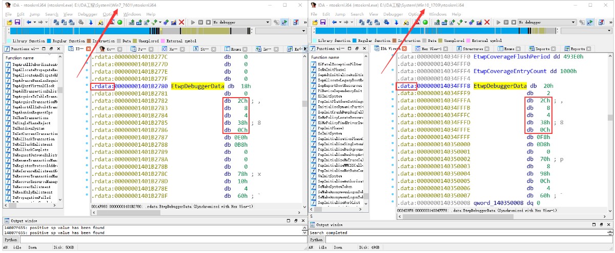不同系统上的 EtwpDebuggerData 可能存在于不同的区段。