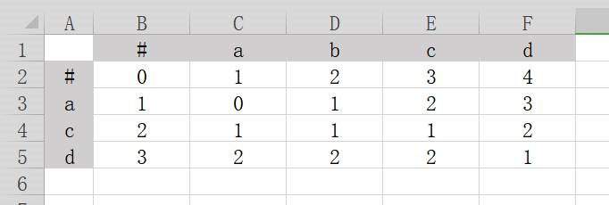 (abcde -> hijkl),如果abcde想要变成hijkl,则需要替换hijkl中的全部字符。总计进行5次替换,所以编辑距离是5。