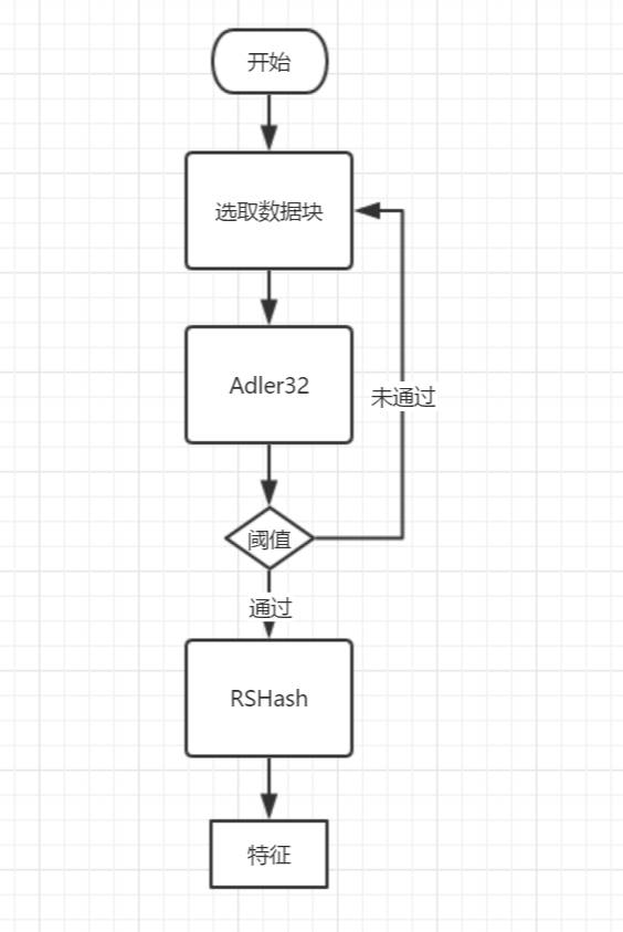 在每一轮计算Adler32 Hash后都会与阈值相比对,如果符合阈值,则计算RSHash,把RSHash的计算结果当作特征元,存入特征序列。
