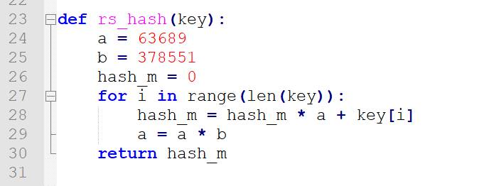 RSHash hash是一个简单的强hash算法,其python实现如下: