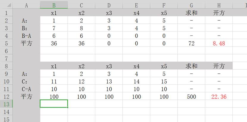 2、然后把各位做减法的结果取平方后相加。