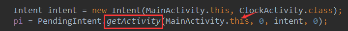 PendingIntent对象设置动作,启动的是Activity还是Service,又或者是广播! PendingIntent pi = PendingIntent.getActivity(MainActivity.this, 0, intent, 0);