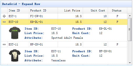 数据网格(datagrid)可以改变它的视图(view)来显示不同的效果。使用详细视图,数据网格(datagrid)可以在数据行的左边显示展开按钮("+" 或者 "-")。用户可以展开行来显示附加的详细信息。